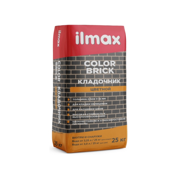 Кладочник ilmax color brick цветной 25 кг применяется для кирпичной и каменной кладки стен и перегородок из кирпича, природных и искусственных камней правильной и неправильной формы. Также применяется для заполнения выбоин, сколов и трещин в кладке.