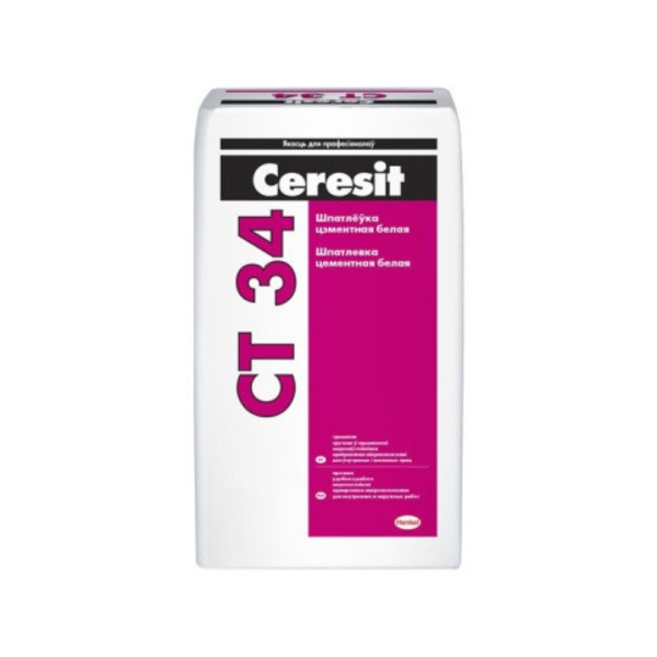 Шпатлевка цементная Ceresit CT 34 белая – высококачественный отделочный материал, который предназначен для выравнивания стен и потолка, устраняет мелкие неровности, трещины, и хорошо подготавливает поверхность под покраску или поклейку обоев. Подходит как для внутренней отделки, так и для наружной.