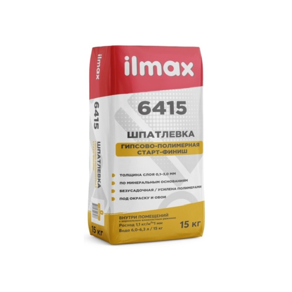 Шпатлевка гипсовая старт-финиш ilmax 6415 белая – высококачественный отделочный материал, который предназначен для выравнивания стен и потолка, устраняет мелкие неровности, трещины, и хорошо подготавливает поверхность под покраску или поклейку обоев.